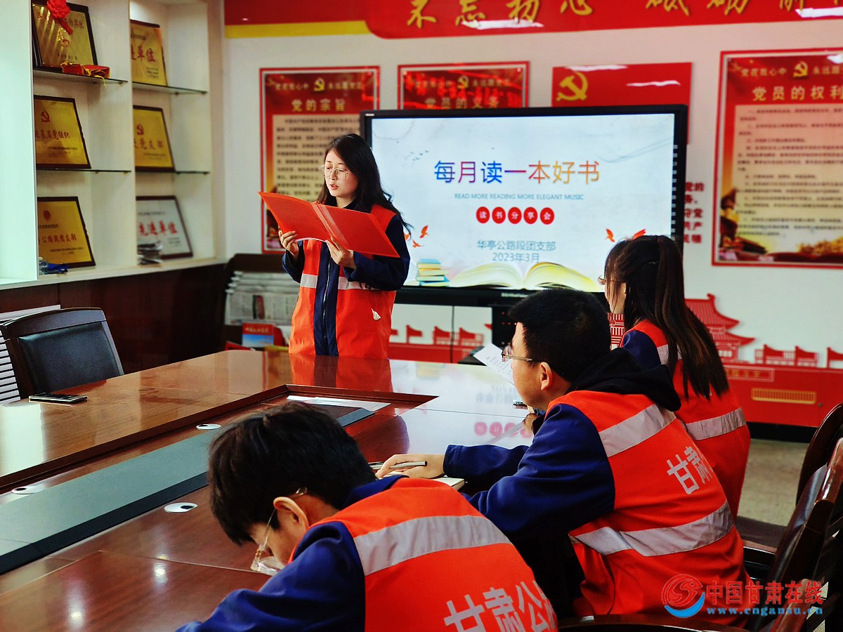 中国甘肃在线崇信讯 为学深悟透做实党的二十大精神,扎实开展“三抓三促”行动,教育引导团员青年坚定理想信念,踔厉奋发、勇毅前行,3月22日下午,平凉市华亭公路段团支部开展了“‘悦’读致远 书香润心”读书分享会活动。