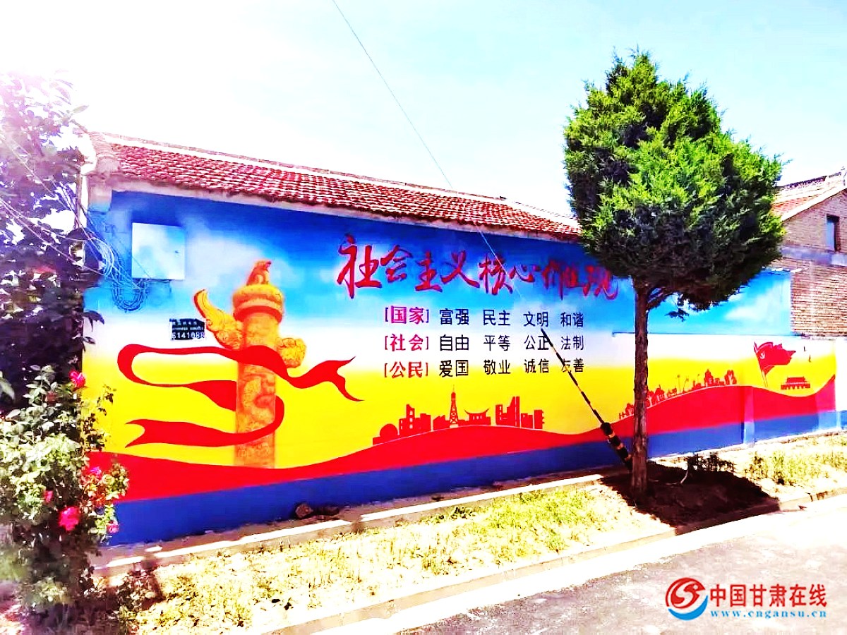 中国甘肃在线崇信讯(通讯员 郑小倩)干净整洁的村道、绿树掩映下色彩鲜艳的墙体手绘画……走在黄花乡杨家沟村的乡间道路上,墙体彩绘随处可见,处处都能感受到美丽乡村建设发展的浓郁气息。