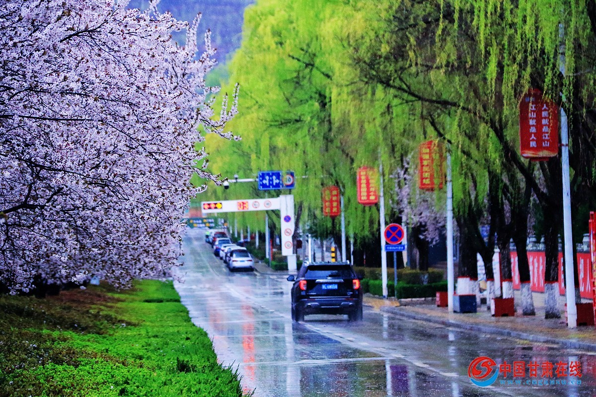 中国甘肃在线崇信讯(通讯员:王丹)四月的脚步刚踏进春天,崇信县便迎来了紫叶李花的盛放。浓浓春色乘风而来,公园里、大街小巷的道路中间,紫叶李花正肆意开放,粉白色小花缀满枝头,车辆驶过,一树一树的小花犹如粉白色云霞,宛如仙境,不经意间便绘就了满城浪漫。