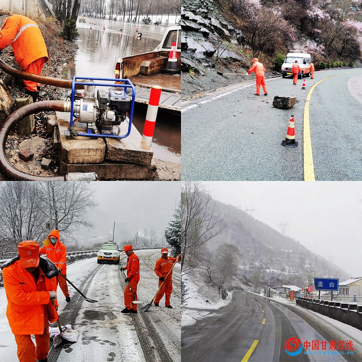 中国甘肃在线华亭讯(通讯员:李文兰)经历了热情的周末后,这个周一从一场雨夹雪开始!雨雪天+周末综合症是不是特别不想上班,然而今天一大早,面对如此天气,华亭公路人早早就带上工具上路巡查。