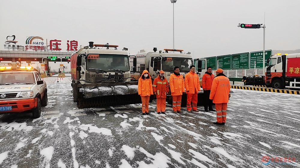 不得不说,今天是个“好”日子,今天却是个“坏”天气。昨天的雨夹雪让路面在一层薄雪之下暗藏一层薄冰,道路状况十分复杂,出行安全存在隐患。但是,公路人对恶劣天气的敏锐度是非常高的,2月20日晚9点多,根据气象预警,庄浪公路段便迅速组织人员机械车辆在关山路段、关山隧道口、辖养路段背坡桥面等重点路段撒布了融雪剂和防滑料。今天早上六点,庄浪公路段各站、队、点、室又火速集合,装载充足的防滑物资在管养的G566线、S304线、S218线、S25线高速路等全面开启除雪保畅作业。