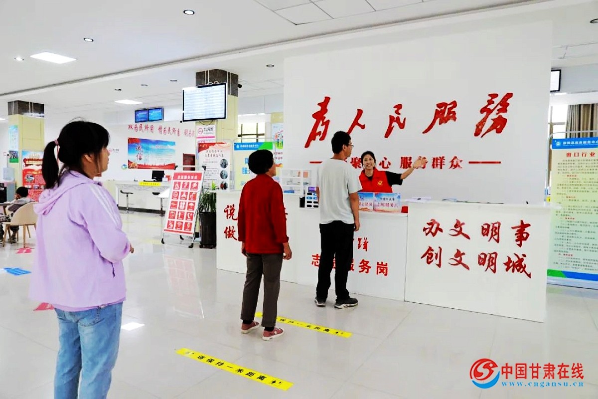 中国甘肃在线崇信讯(通讯员:于福娟)“来!阿姨,慢点走,我带你到3号窗口办理业务”,在崇信县政务服务中心大厅,干净整洁的办事环境,微笑服务的志愿者正在耐心地为群众提供帮办服务,这样的文明用语,办事群众在政务服务大厅的各个服务窗口都能遇到。