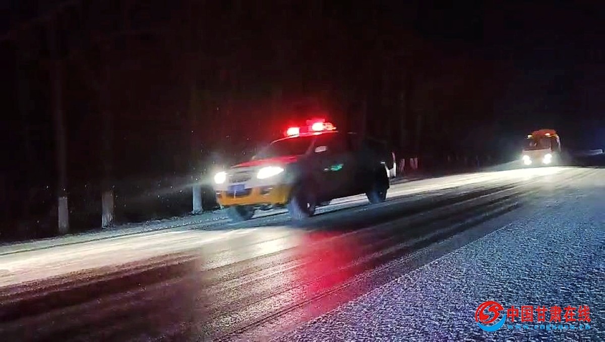 万籁俱寂,寒风刺骨。省道304线关山路段爆闪灯划破深邃的夜空,警笛声撕破寂静的深夜,橘红色的标志服给雪夜增添一份温暖。除雪滚刷和融雪剂撒布机不断作业发出唰唰、砰砰声,那是华亭公路段昼夜鏖战开展除雪防滑保畅作业。