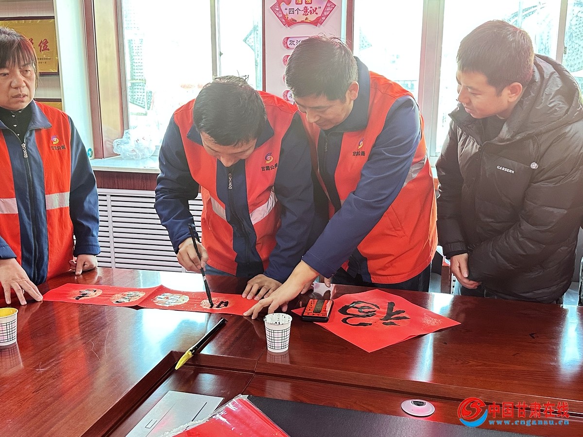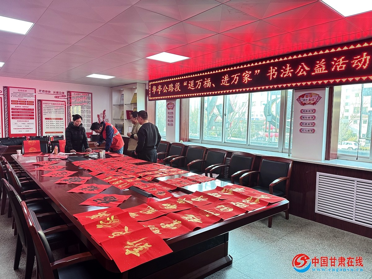 中国甘肃在线华亭讯 在新春佳节来临之际,华亭公路段开展“泼墨写春联,送福进万家”活动,特邀书法爱好者用笔墨丹青为职工送上一份特殊的新春“年货”。
