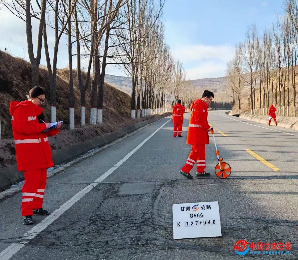 中国甘肃在线庄浪讯 春风消融冰雪,草木蓄力萌发。当第一缕金晖刺破云层,橘色标志服的养护工们在料峭春风中集结,手持卷尺、记录本,背着测距仪,像一群奔赴战场的侦察兵—他们的任务是替大地经脉“把脉”,在春雪初融时,为公路揭开第一层病理诊断书。