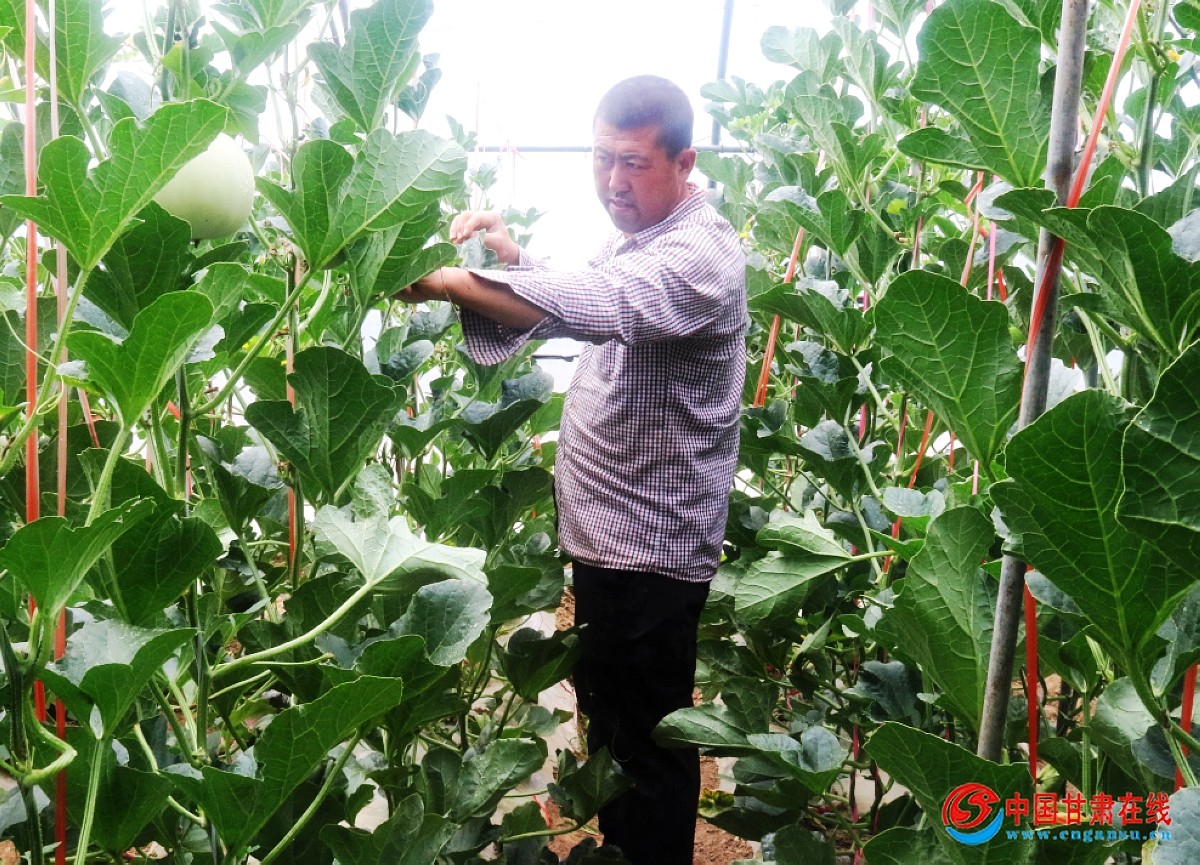 中国甘肃在线崇信讯 端午临近,正是崇信甜瓜上市的最佳时机,45岁的章虎龙早早起床简单的洗漱后,急急忙忙吃了几口馍,一头就钻进自家的瓜棚里忙的不亦乐乎。