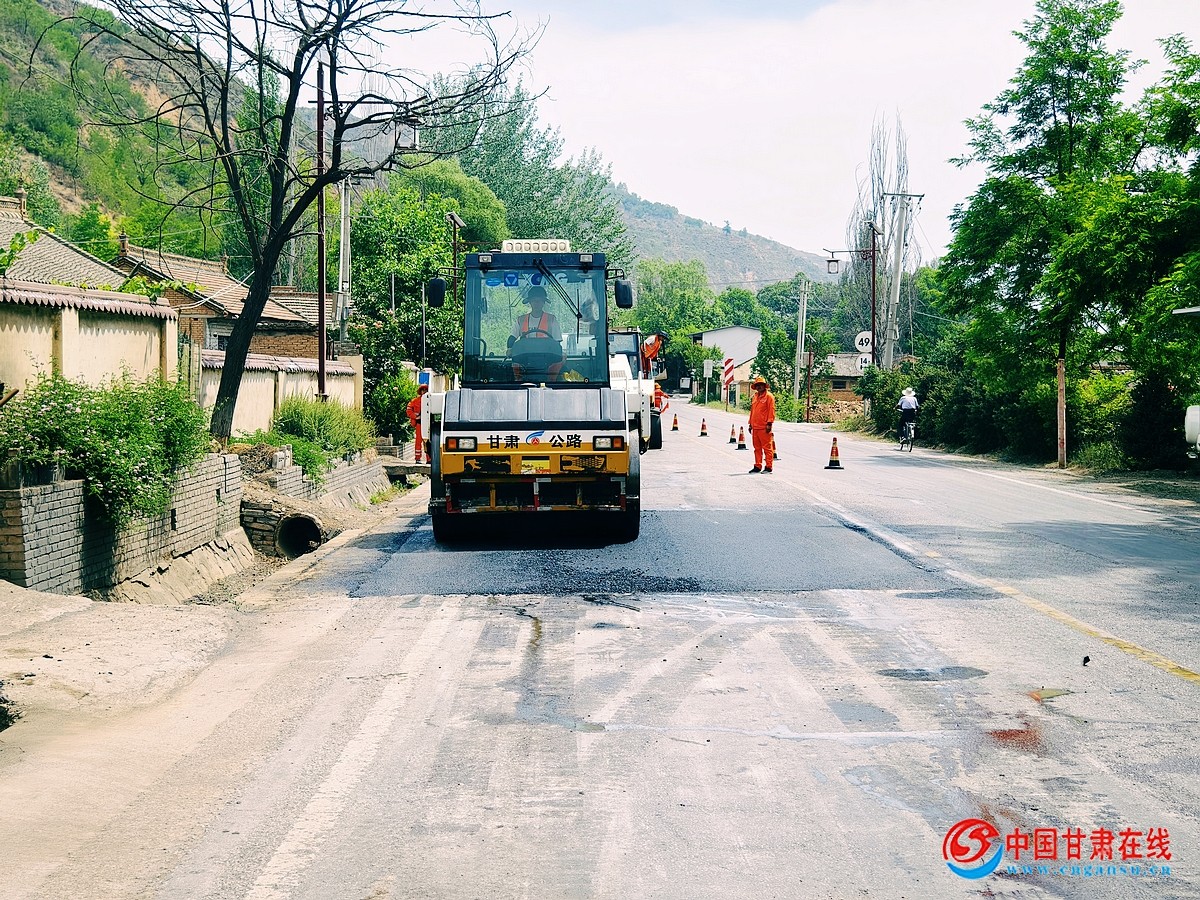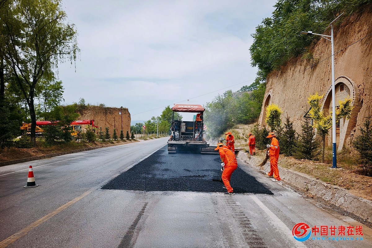 中国甘肃在线崇信讯 五月的崇信,骄阳似火,热浪翻涌。在国道312线地表温度如火箭般蹿升至60℃,蒸腾的沥青路面泛起扭曲的热浪,仿佛大地在“发高烧”。与此同时,160℃的沥青混合料在翻滚沸腾,200℃的标线涂料咕嘟作响,二者在滚烫的公路上交织成一场激烈的“双热战场”。