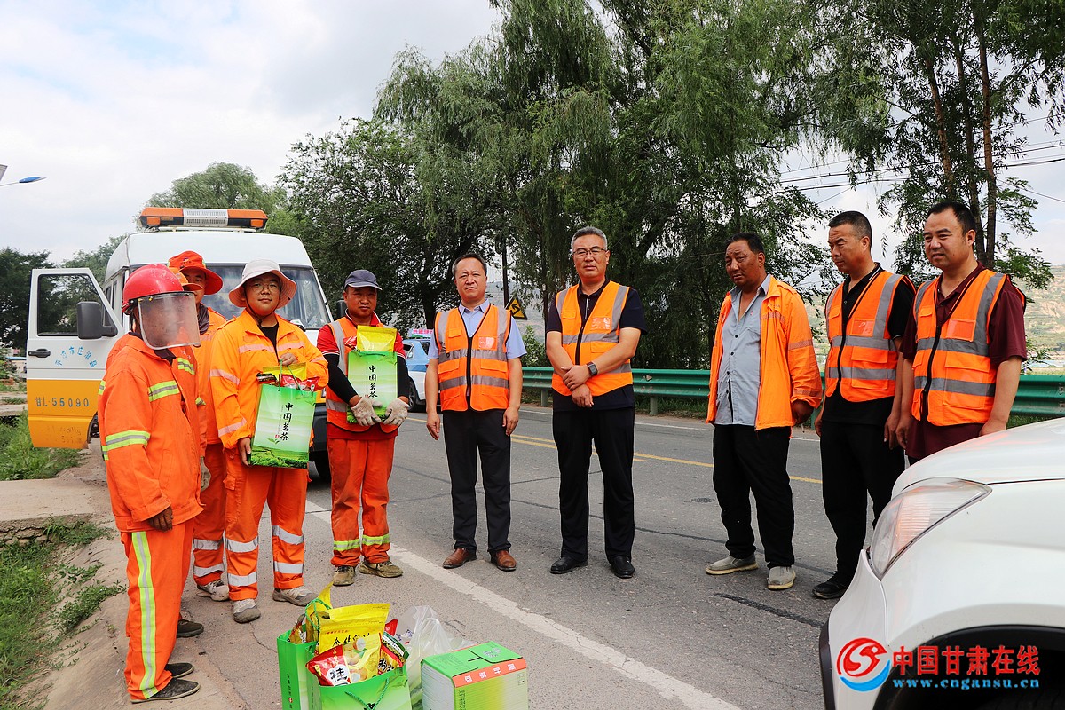 为切实保障高温环境下职工的身心健康与劳动安全,庄浪公路段积极响应中心工会部署要求,把做好职工高温劳动保护作为要务,迅速组织开展了“夏送清凉”慰问活动。段领导班子成员分赴各养护作业点,将组织的关怀送到职工心坎上。一份份精心准备的清凉物资——消暑解渴的菊花茶、甘甜多汁的西瓜、补充体能的矿泉水,以及桂圆、枸杞、冰糖、白茶等防暑物品,被一一送到一线职工手中。段领导在慰问中,一边递上解暑物品,一边反复叮嘱大家要科学安排作息时间,避开高温峰值时段作业,务必做好自我防护,确保“身体安全”与“作业安全”齐头并进。