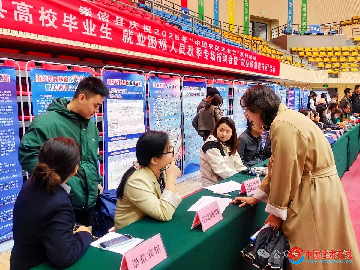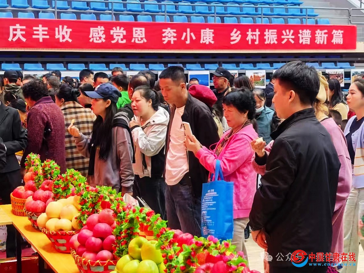 志愿服务是文明实践的鲜活底色,丰收节现场的“志愿红”让温暖触手可及。科技与人才对接区里,志愿者为农户提供农技咨询,人社部门搭建的招聘展台让年轻人实现“家门口就业”的愿望。特色展销区里,志愿者化身“主播”参与“云端丰收节”,通过“我为家乡农产品代言”活动将苹果、红牛肉、崇信芹菜等特产推向更广阔市场。从政策讲解到产销对接,志愿服务精准对接群众需求,让文明实践既有温度又具实效。