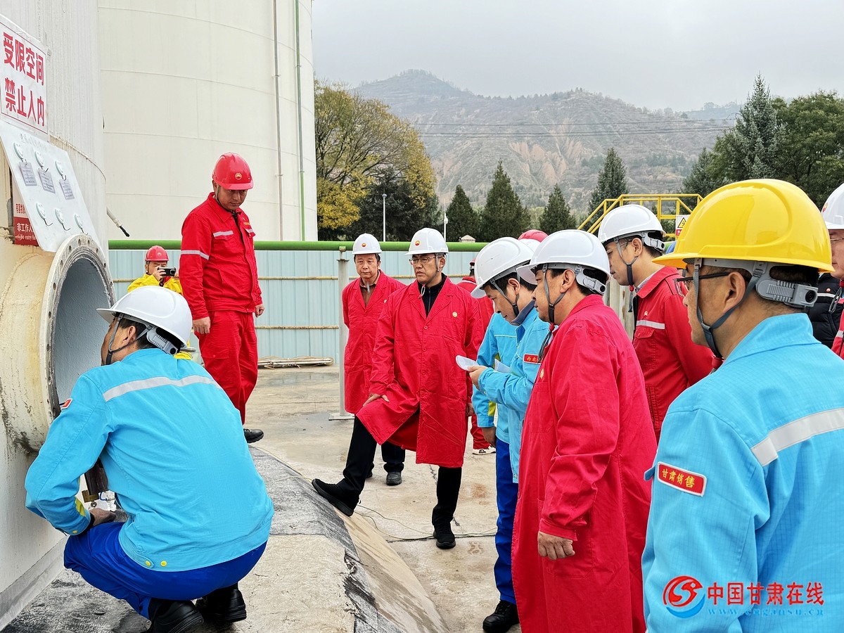 中国甘肃在线平凉讯 10月30日上午,西北销售公司专家组一行深入储运分公司新李油库,对油库储罐浮盘改造项目进行了全面细致的专项检查,旨在提升油库储罐的密封性能,降低油品挥发损耗,确保改造项目的高质量推进,进一步提升油库的安全运行水平。检查前