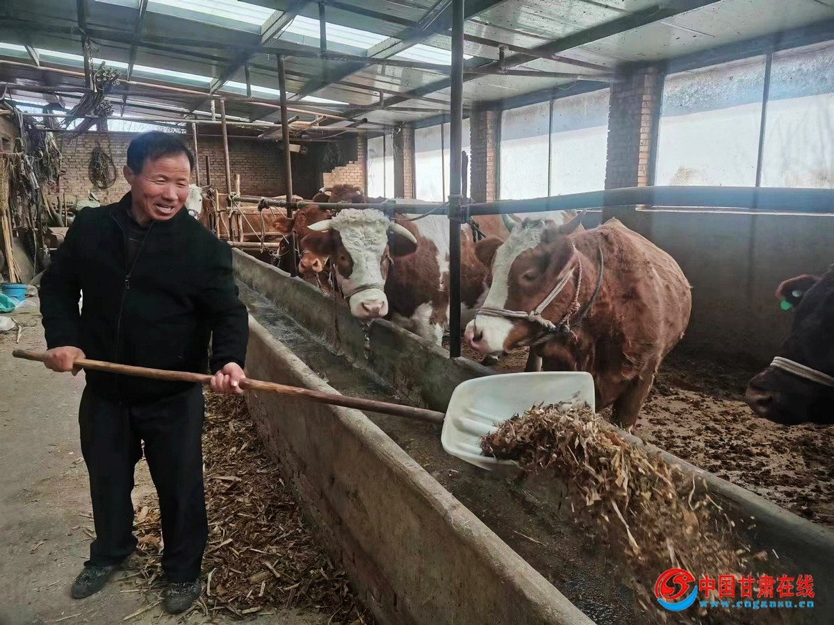 中国甘肃在线崇信讯 近日,走进崇信县柏树镇闫湾村村民王双怀的红牛养殖场里,一头头健硕肥壮的“平凉红牛”正在细细地咀嚼着草料。王双怀正在给本村的养殖户们讲解冬季防疫知识和饲草料配方,并现场示范,赢得阵阵掌声和欢声笑语。今年55岁的王双怀, 1
