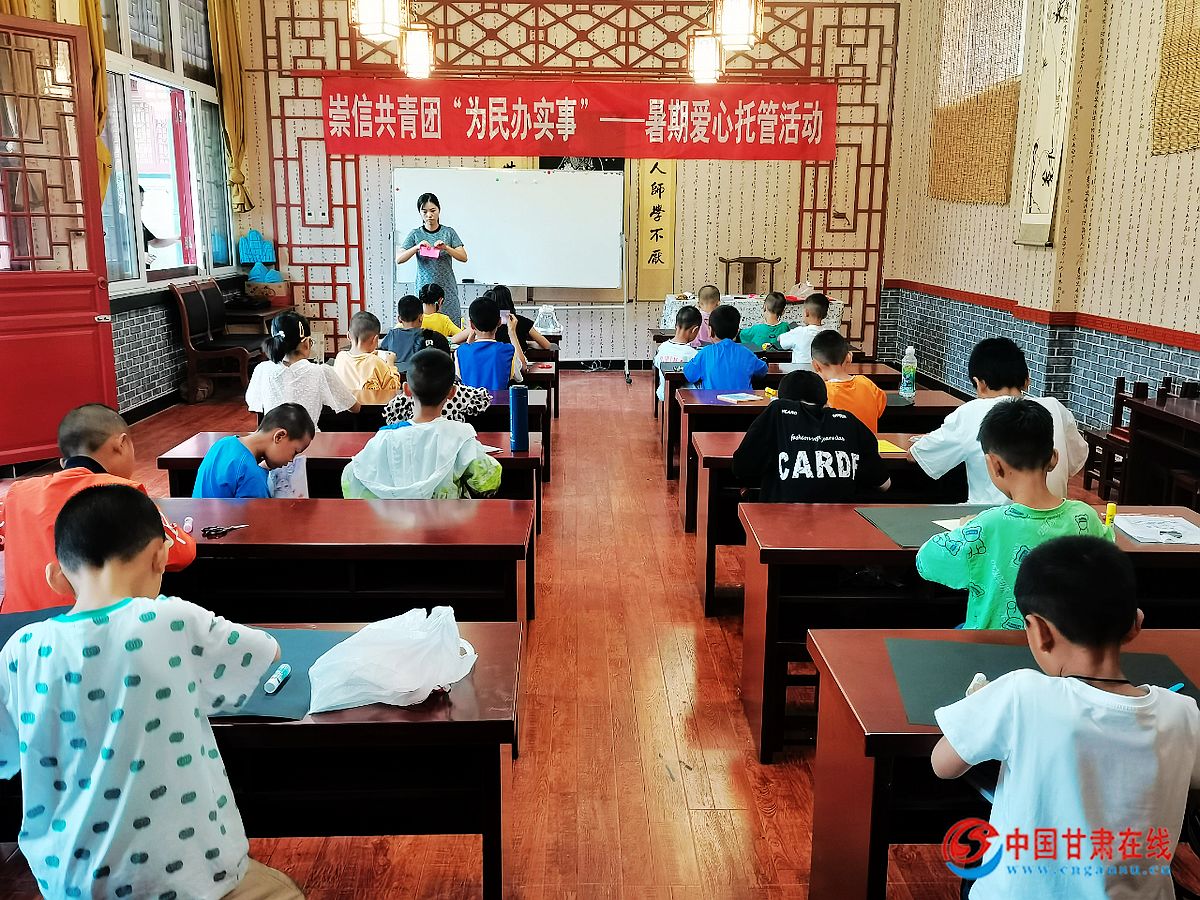 中国甘肃在线崇信讯 为进一步增强共青团服务青少年的能力,加强少年儿童校外教育,助力“双减”政策落实落细,缓解小学生暑期“看护难”问题,解除家长的后顾之忧,缓解小学生暑期“看护难”问题,引导和帮助少年儿童度过一个安全、健康、快乐、充实的暑假,