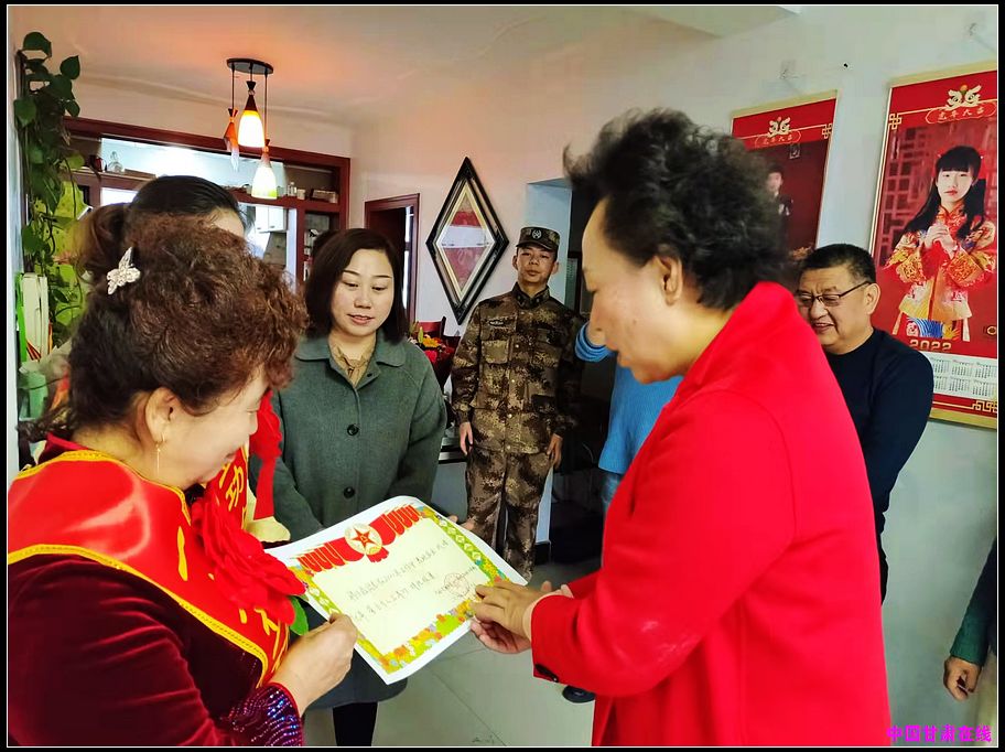 中国甘肃在线酒泉讯 近日,区武装部及区退役军人事务局相关负责人一行先后来到北新街社区世博花苑A区,为荣立三等功的现役军人杨某家属送去喜报、立功受奖证书及慰问品。下午17时,社区文化活动队的队员们就敲着锣打着鼓来到了世博花苑A区,引得路过居民