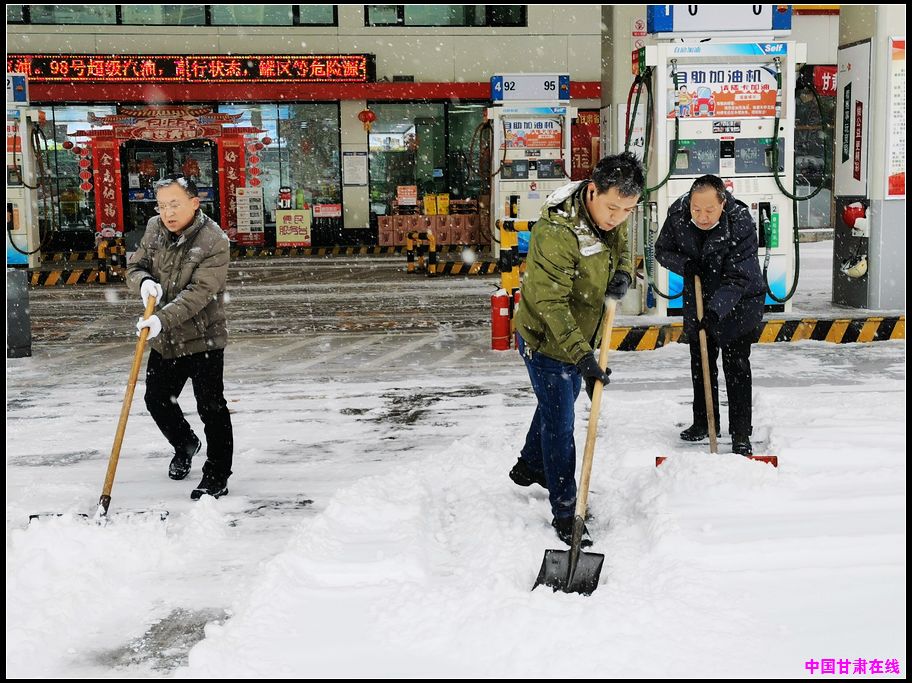 中国甘肃在线平凉讯(作者:景宝灵)春节即将来临,瑞雪如期而至,给行人和车辆出行带来极大的不便。1月23日,中国石油甘肃平凉销售分公司领导班子成员带领机关干部员工纷纷前往崆峒片区加油站,拿起雪铲、铁锹,在皑皑白雪中为员工和客户开辟安全通道。雪