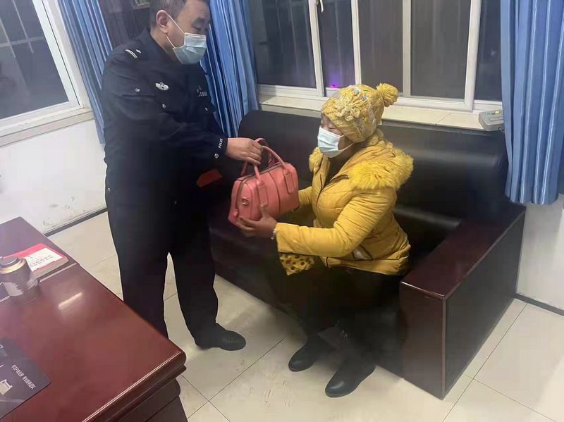 联络员:王博洋联系地址:甘肃省平凉市华亭市公安局12月31日,华亭市公安局神峪派出所民警积极为群众找回装有现金和重要证件的包,获群众好评。近日,华亭市民黄某女士神色焦急的来到神峪派出所报警称:其在街道赶集时不慎将手提包遗失了,包内除了手机、