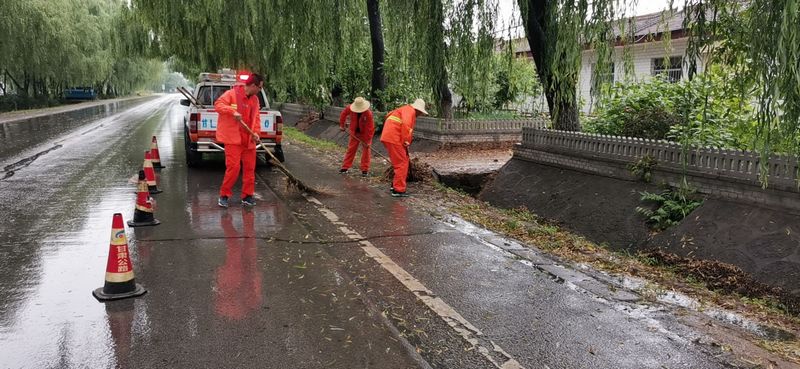 中国甘肃在线崇信讯(通讯员:王红艳)每到下雨天,由于出行不便,路上的车辆、行人相对较少,但对公路人来说,在他们的“字典”里并没有下雨天这一说法,无论是刮风下雨还是其他天气,在道路上你总能见到他们身影。7月15日上午,由于崇信县有强降雨,路面