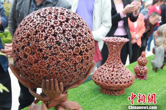 9月28日,甘肃宕昌县露天广场集中展出近千件手工艺品,吸引众多民众驻足观看。其中根雕和山核桃手工制品,制作精美、造型奇特,以其独特的艺术魅力、装饰和实用性能,引得大家品鉴赞赏。(来源:新华网)