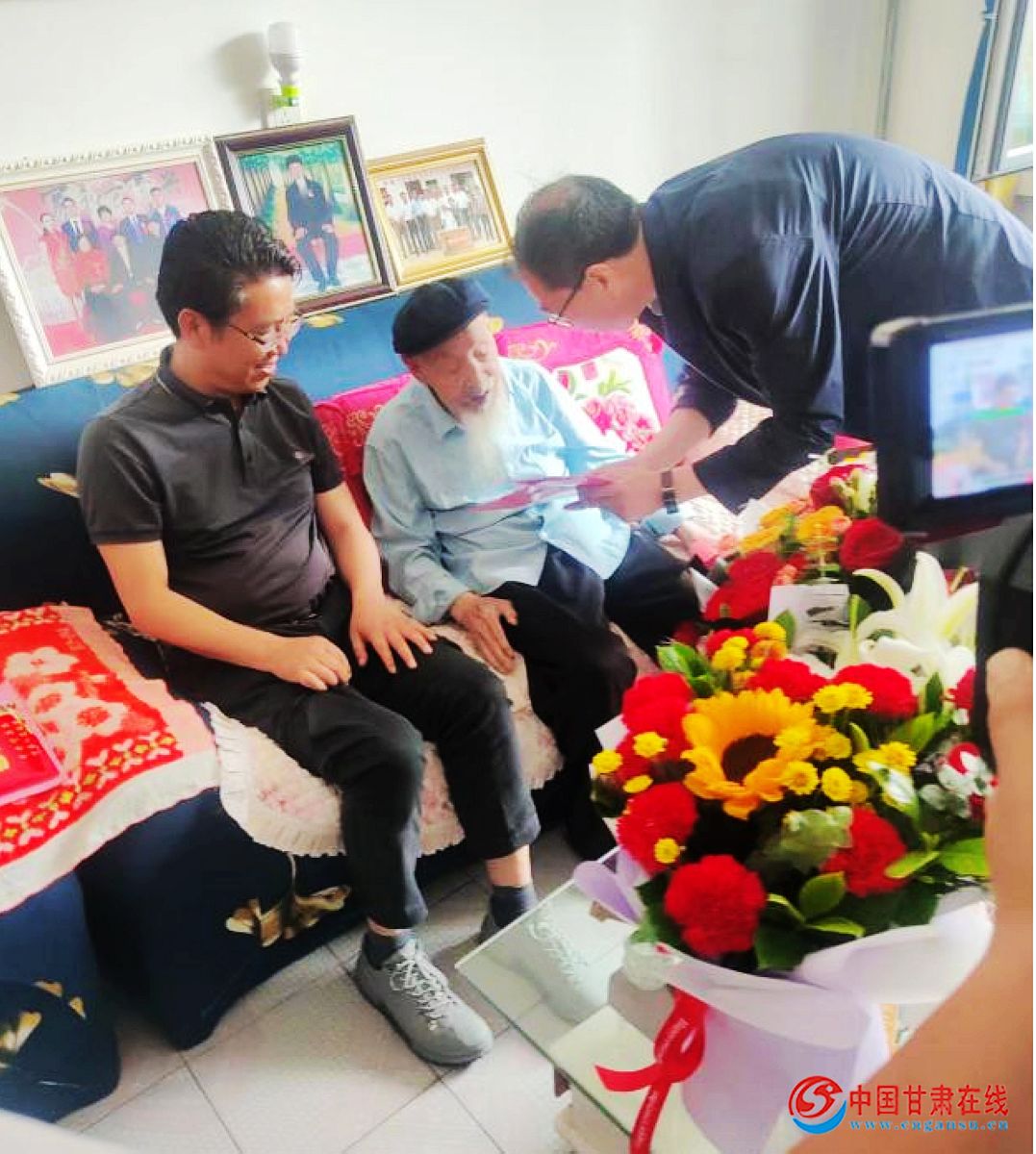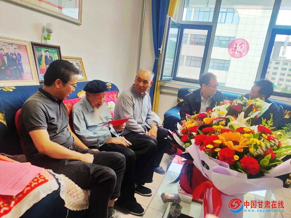 中国甘肃在线宁县讯 “八一”建军节前夕,7月27日,宁县委书记段登云、庆阳市退役军人事务局局长孙明东,来到老红军闫俊杰的住处,慰问我县老红军闫俊杰,庆阳市农行、县退役军人事务局、县农行、春荣镇主要负责人一同参加,把党和政府的关怀和温暖送到退役老兵、老红军的心坎上。
