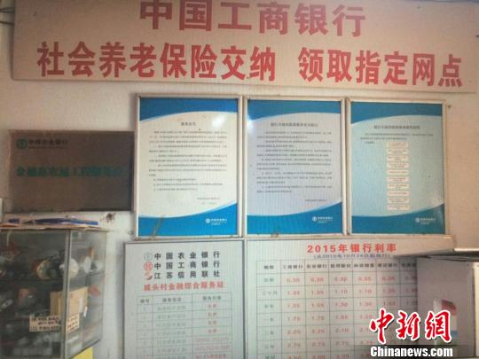 小卖部门口宣传栏上写着“中国人民银行、江苏信用联社城头村金融综合服务站”。警方供图