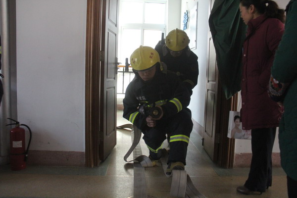 演练开始前,官兵们对单位外围的消火栓进行测试,并深入单位内部对重点部位、消防通道、内部灭火设施等基本情况进行熟悉掌握,加深官兵对重点单位的了解掌握,特别是室内消火栓和各个疏散出口的位置,以保证在发生各种突发事件时第一时间到达现场,准确、迅速的实施救援和疏散,从而最大限度的减少人员伤亡和财产损失。随后,演练开始,假设二楼起火,官兵们迅速组成攻坚组,搜救组,警戒组等。演练中,全体官兵机智果断,动作有条不紊,战术运用科学合理,灾情处置快速、有效,演练达到了预期的效果。