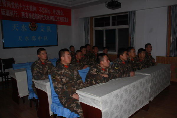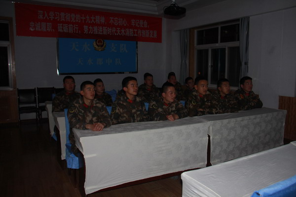 为进一步加强官兵爱国主义教育、坚定理想信念的思想。12月19日,天水郡中队组织官兵收看大型纪录片《中国辉煌》。
