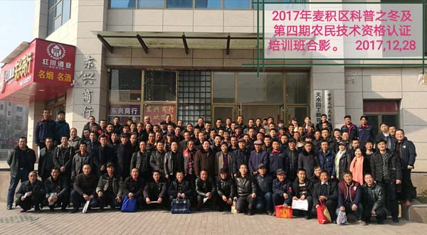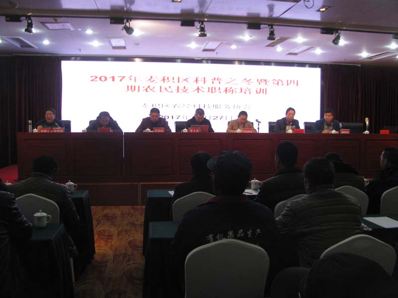 12月27日,天水市麦积区2017年科普之冬暨第4期农民技术培训会在山水苑酒店会议室举行。