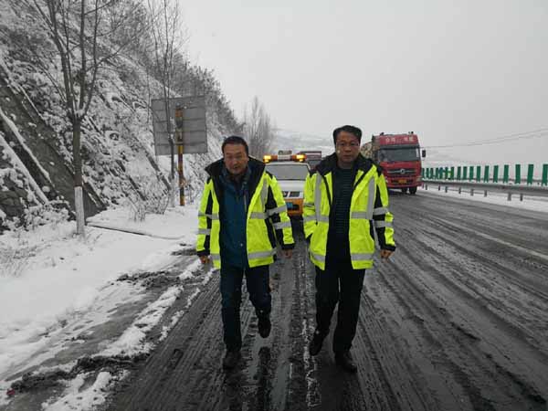 天水公路管理局高养中心周密部署,主要领导在单位值班,连夜调动多功能除雪车、撒盐车、装载机、巡查车和养护职工,投入到除雪防滑保畅的攻坚战中。撒盐车在全线撒融雪剂,多功能除雪车和装载机推雪铲雪,在匝道出入口、急弯长坡、桥面、隧道进出口、阴湿地带等重点路段人工撒铺防滑料,全面消除积雪。在做好防滑保畅工作的同时,抓好安全生产告知和职工安全教育工作,确保养护职工自身的安全。