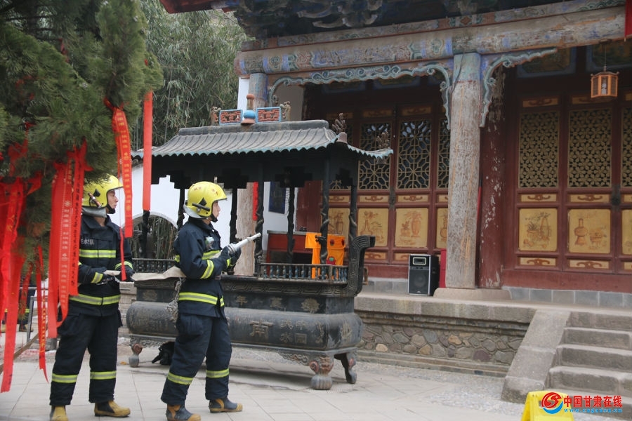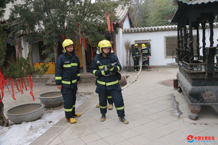 中国甘肃在线天水讯(通讯员:景辽强)为切实做好2018年春节期间寺庙消防安全工作,近日,七里墩中队深入南郭寺开展灭火救援联合演练,切实做好节前执勤备战工作,全面确保春节期间消防安全保卫任务顺利完成。