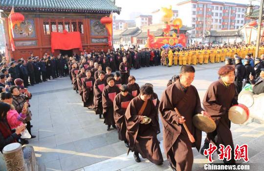 2月28日(农历正月十三),甘肃省天水市伏羲庙门前旗幡飘扬,人头攒动,“泽被华夏——戊戌(2018)年天水伏羲庙春祭伏羲典礼”拉开序幕。典礼包括迎圣水、迎神和安神等仪式。迎圣水仪式是首批国家级非物质文化遗产保护项目——“太昊伏羲祭典”礼仪的一项重要内容。在迎神仪式上,主祭人将供奉的圣水洒向大地、洒向万民,祈祷福佑中华,五谷丰登,国泰民安。同时,祝福天水大地风调雨顺,万民安康,吉祥如意。(来源:中国新闻网)