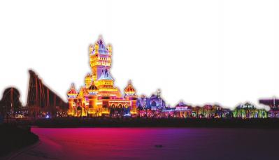 嘉峪关市方特欢乐世界主题公园烟火璀璨,灯光闪烁,令人仿佛置身于奇幻的童话世界,每天吸引大批游客、市民前往观看。