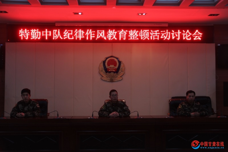 特勤中队对此次作风纪律整顿活动高度重视,周密部署,采取了有力措施,中队全体官兵热情高涨,积极投入到活动中来。中队将进一步深化活动开展,彻底做到“强作风、严管理、促发展、树形象”的良好状况。