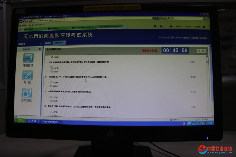 通过此次条令条例网上考试,有效检验了近段时间来中队官兵学习条令条例的成果,促进了全体官兵学条令、用条令的意识,增强了官兵落实条令、遵章守纪的自觉性,使部队正规化建设水平得到进一步提升。单位:天水市公安消防支队七里墩中队 通讯员:景辽强
