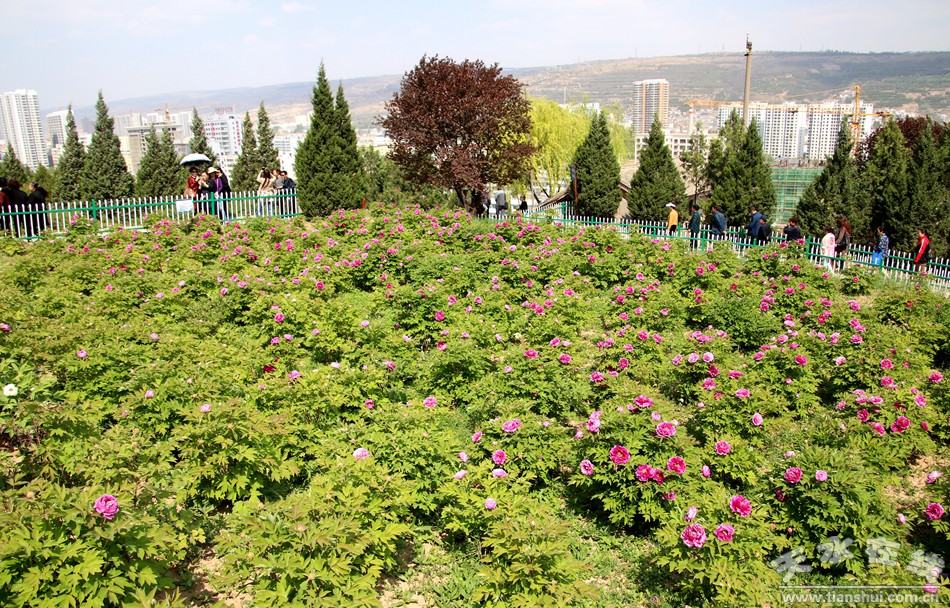 牡丹园作为园区内最大的观赏园,占地200余亩,游园步道1760米,主要栽植洛阳红、大胡红、肉芙蓉、赵粉、锦绣球、红彩球等40余个品种。下一步,秦州林业部门计划将其创建为陇东南最大最具观赏性的牡丹专类园。