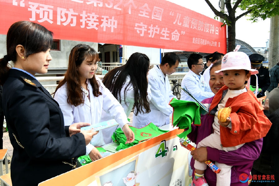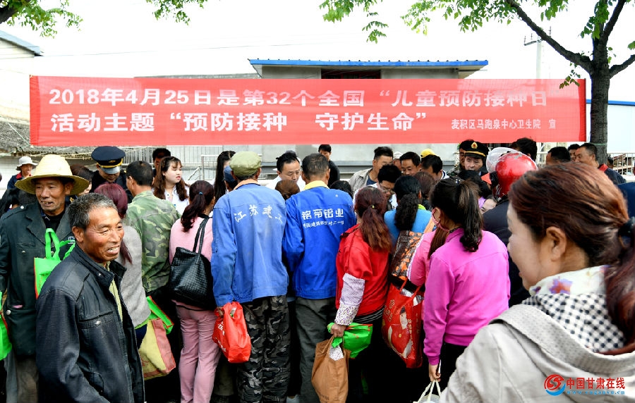 4月25日,在第32个全国“儿童预防接种日”之际,麦积区马跑泉中心卫生院组织医务人员、卫生监督协管员和30多个村卫生室工作人员积极开展以“预防接种,守护生命”为主题的宣传活动。