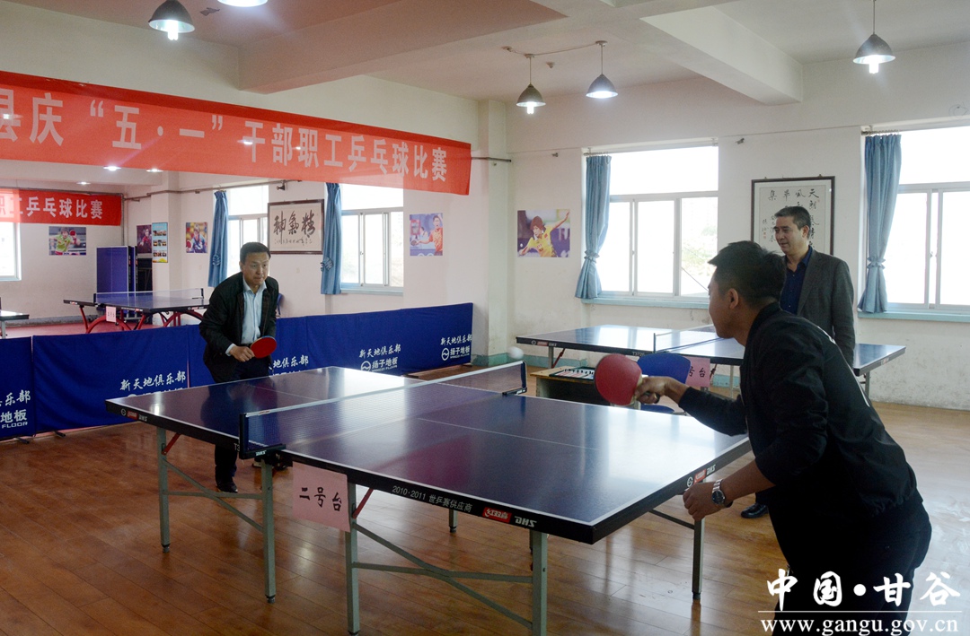 在“五一”国际劳动节即将到来之际,为丰富全县干部职工文体活动,4月27日,甘谷县庆“五一”干部职工乒乓球比赛在新天地俱乐部举行。来自各行各业的120名干部职工齐聚一堂,以球会友、以球联谊,在运动与汗水中充分展现甘谷干部职工的时代风采。