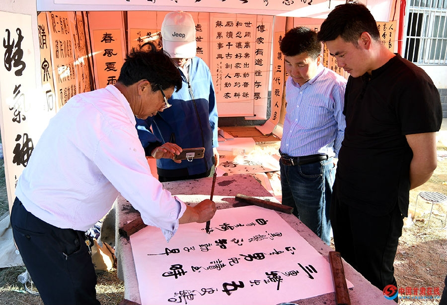 近日,陇西书法家王体来天水市麦积区凤凰山进行艺术交流活动,深受当地书画爱好者欢迎和书画收藏者的青睐。