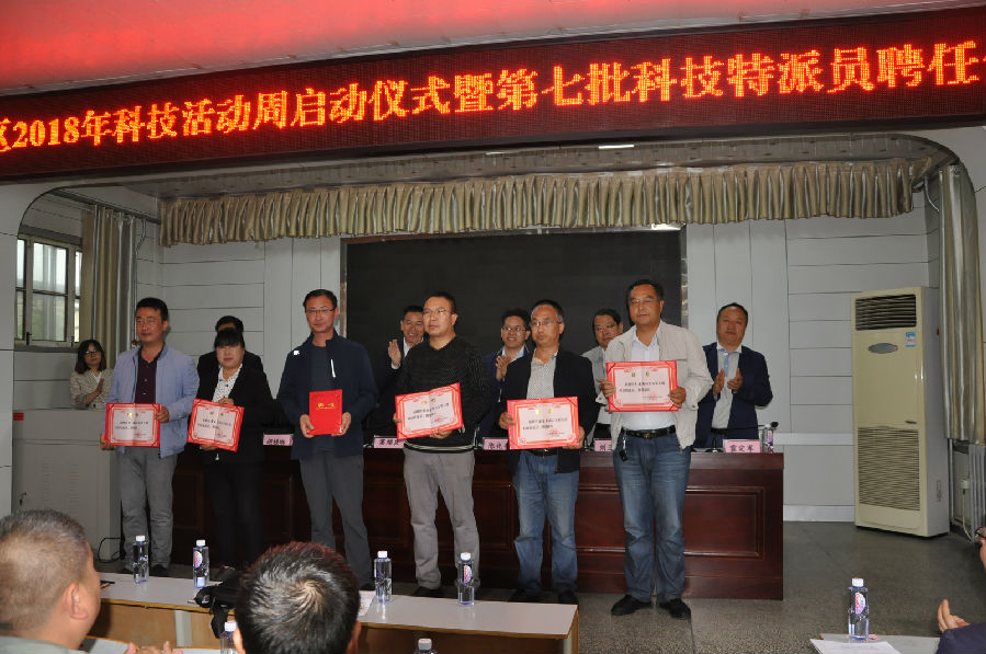 会上区委宣传部常务副部长刘亚斌宣读了《关于举办2018年麦积区科技活动周的通知》;区科技局局长曹福兴宣读了《天水市人民政府关于聘任安继宗等220名通知为第七批科技特派员的通知》;会上对新聘任的安继宗等220名科技特派员颁发了聘任证书;为获得2017年度优秀农村乡土人才的郭灶焕等10人颁发了荣誉证书;区果业局、元龙镇政府、科技特派员代表裴宏洲分别作了表态发言。最后副区长陈兆亭就开展科技活动周和科技特派员工作做了讲话。