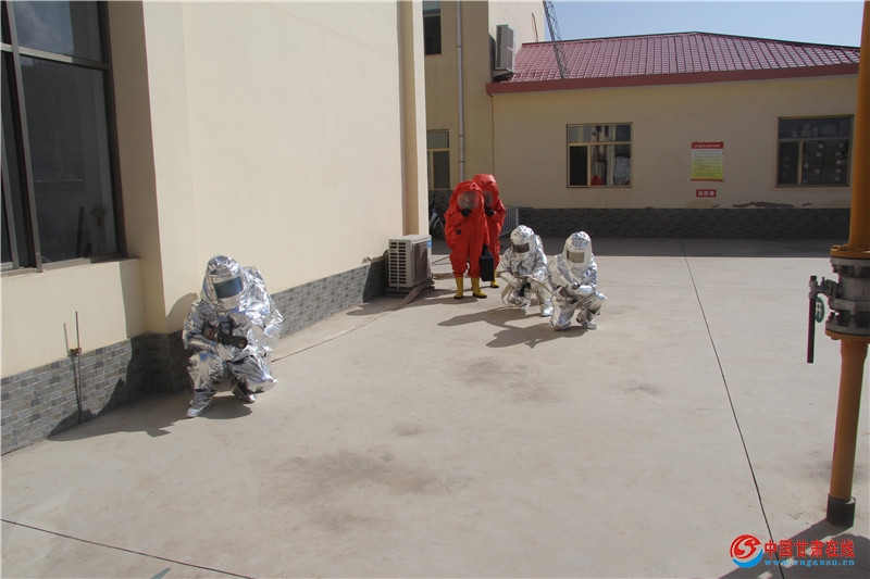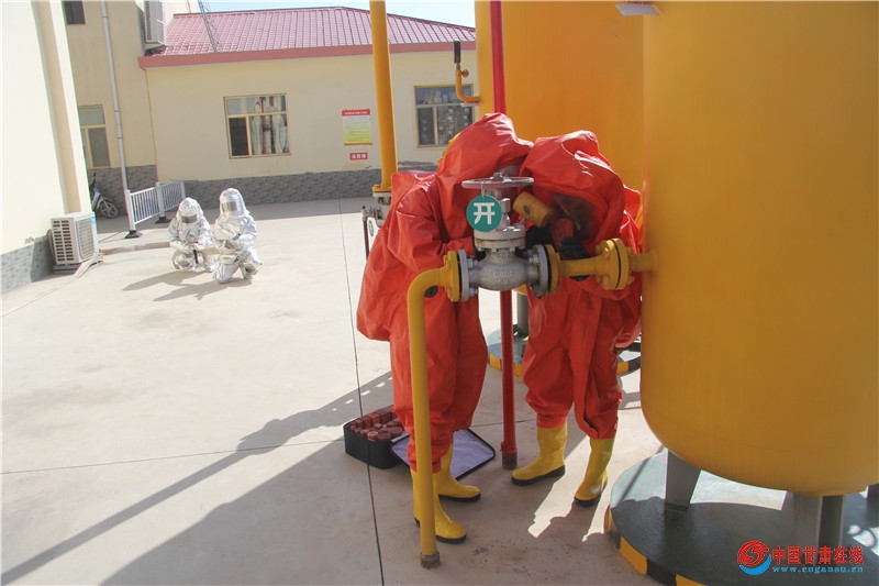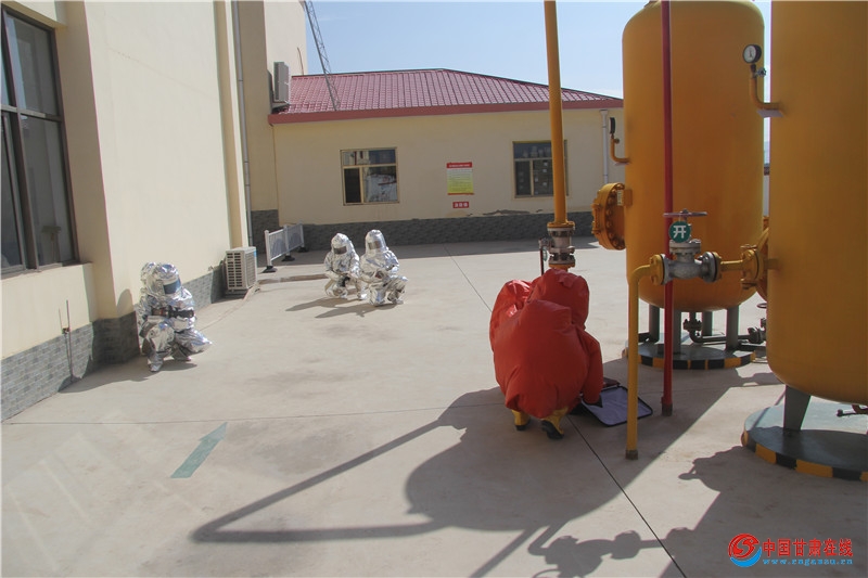 首先,中队官兵在该加气站负责人带领下对加气站进行了详细的了解,同时指挥员进行了火情设置和战斗分工。演练假设:加气机由于工作人员操作不甚引发火灾,工作人员发现后,立即关掉气阀并拨打119,同时在场工作人员利用站内的干粉灭火器对着火部位实施灭火抢救。消防官兵到场后,指挥员根据侦察情况,果断下达了作战命令,一组人员负责现场警戒和侦检,封锁事故路段交通,隔离围观群众,严禁无关车辆及人员进入“火灾”现场。另一组人员出两支枪,一支负责主攻灭火,一支负责对邻近加气机和营业厅建筑进行冷却,防止火灾蔓延。随着命令的下达,各小组迅速对“大火”发起总攻。经过近20分钟的紧急“扑救”,加气站“火灾”被成功扑灭,圆满完成任务。