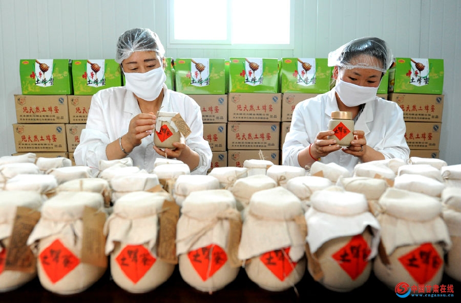 小蜜蜂,酿造了甜蜜生活。深加工,延伸了产业链条。为了把这项甜蜜的事业做大做强,天水桃花沟蜂业有限公司特别邀请甘肃省养蜂研究所的专家对蜂农分片进行养蜂实用技术培训,先后举办培训班15期,培训蜂农达300余人次,帮助蜂农解决了技术上的难题,从而更好的指导蜂农科学发展养蜂产业;公司依托桃花沟养蜂协会和天蕊蜂业农民专业合作社发展会员150余户,其中精准扶贫户35户,4800多箱蜜蜂已在本村养蜂基地“安营扎寨”。与此同时,麦积区畜牧兽医局还为该合作社成员补助400套蜂箱扶持蜂农改良蜂箱,区科技局给该公司资助研发项目补助资金3万元,目前,全镇运用改良蜂箱已达到1600个。从而有效带动了周边村组200多户农户和贫困户发展养蜂产业,走上了脱贫致富的新路子。