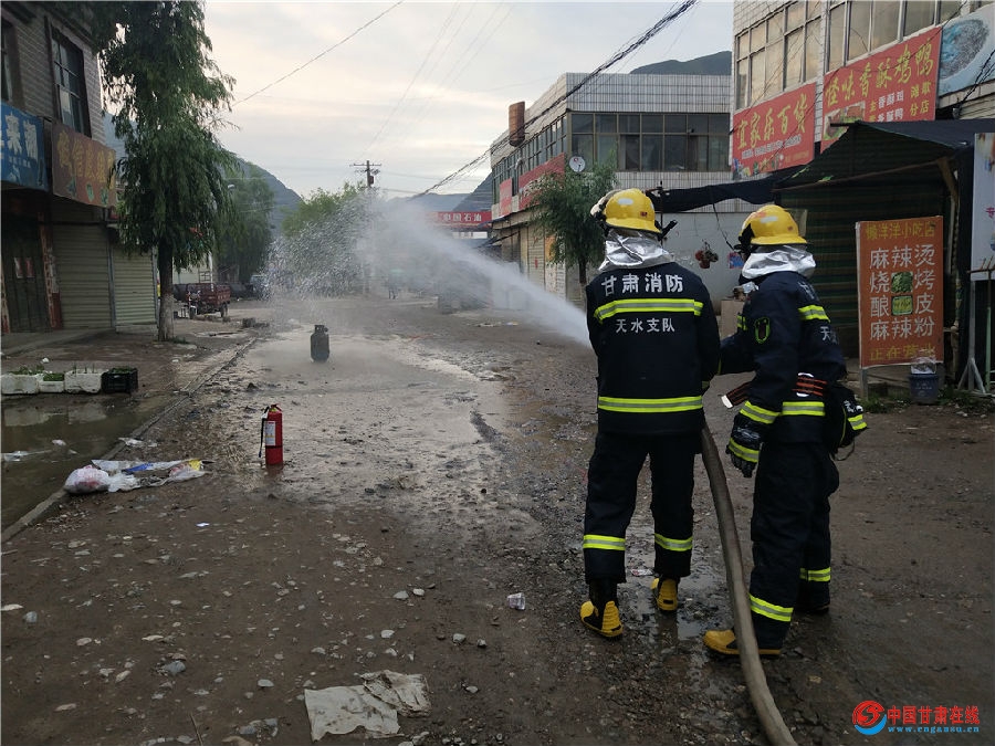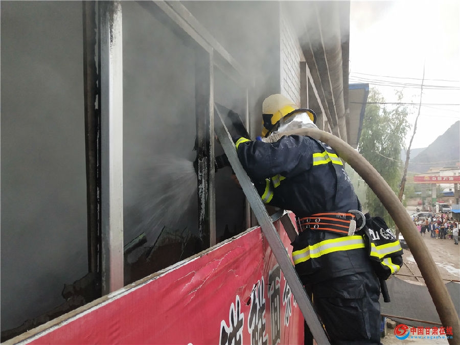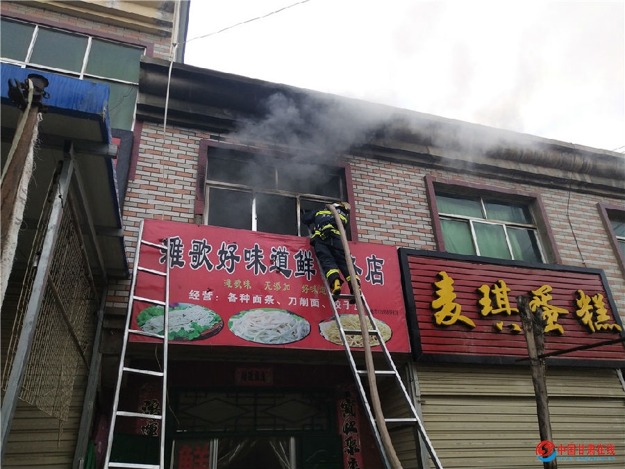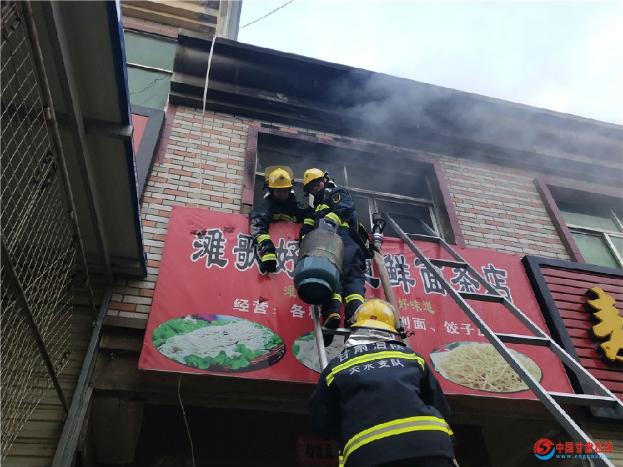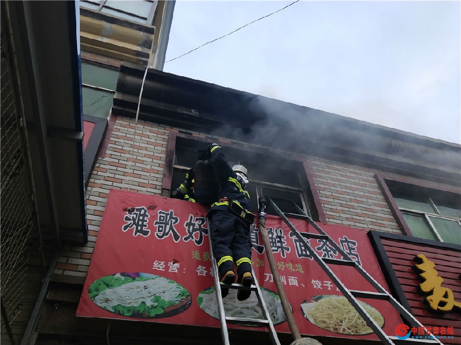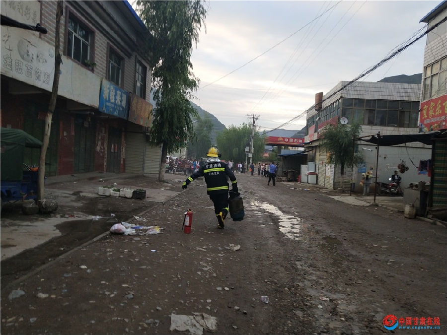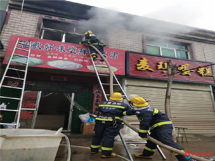 6月18日18点57 分,武山消防中队接到指挥中心命令称:位于滩歌镇的一家面馆二楼发生火灾,接到报警后武山中队官兵立即出动2辆水罐消防车11名官兵前往现场进行扑救。