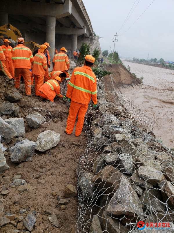 7月2日晚9时起,天水公路管理局高养中心组织抢险人员120余人,调集自卸翻斗车12辆、小霸王双排座6辆、装载机4台,从高养中心应急物资库房调运编织袋、铅丝网等应急物资,投入片石600余立方米,采取石笼围堰防护,连夜开展水毁抢修工作。