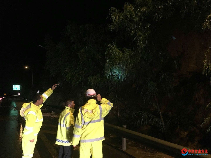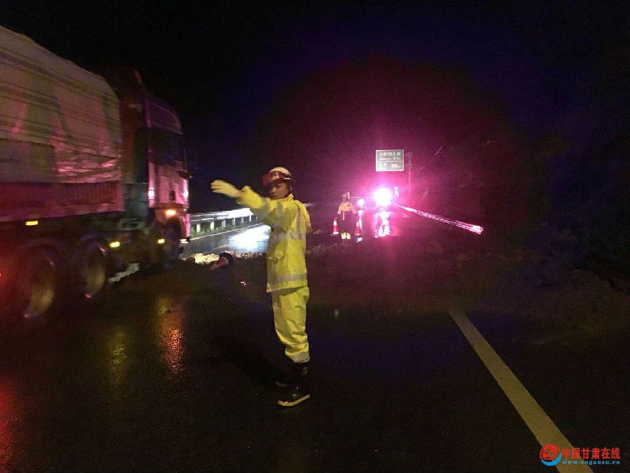 7月10日夜间至11日凌晨,天水清障救援一大队连续作战7小时,应对了滑坡、泥石流等地质灾害,保证了辖区路段安全畅通。
