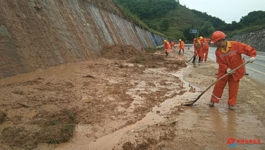 从7月9日至11日,秦州区境内再降暴雨。7月10日20:20时左右,秦州公路管理段接到险情报告S306线徐合路K15+300M至500M和K17+300出现路面落石。灾情就是命令,保畅就是天职。秦州段接到报告后,立即组织人员10