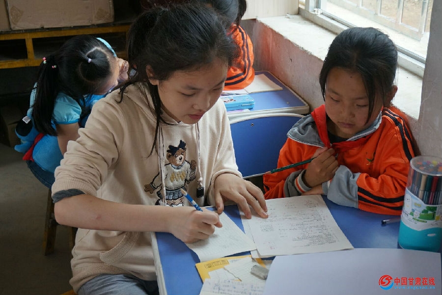 在一整天的体验课中,南京小学生代表们与松树镇阳光希望小学学生们打成一片,结下深厚的情谊。南京小学生代表们为松树镇阳光希望小学学子们讲解题目,介绍南京,和他们一起做手工,南京外国语小学学生代表郭奕彤说:“我给文小璐同学讲题的时候,其他同学也靠过来,很认真的听,他们学习真的很主动,妈妈说这是他们对知识的渴望,我以后也一定更加主动的学习。我还收到文青青同学为我折的千纸鹤,我好开心,一定会把这个千纸鹤带回家,留作纪念。”松树镇阳光希望小学学生们给南京小学生代表们展示了他们的食物馍,还请他们品尝,让南京小学生们去自己家做客,参观家里养的羊。