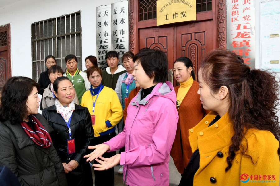 10月22日,甘肃省妇联党组书记、主席周丽宁带领省妇联调研组,赴麦积区五龙镇深度贫困村调研基层妇联工作和巾帼助推精准脱贫工作。天水市副市长、市政府妇儿工委主任张英远,市妇联主席何忠兰,麦积区委副书记牛新虎、区人大常委会副主任窦顺良一同调研。