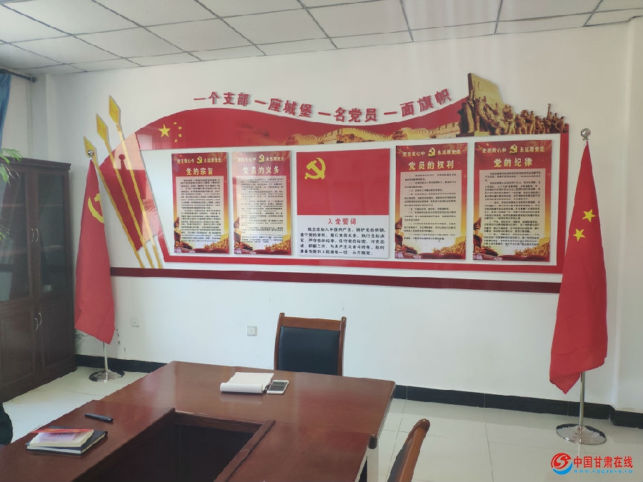 重新打造的党支部活动室焕然一新,党旗、入党誓词正中悬挂;党员权利、义务、三会一课等相关制度规范上墙,按照标准化阵地建设要求,窗明几净的会议室、整齐摆放的桌椅、赏心悦目的绿色植物,严肃大方中透露着温馨,令人振奋,倍感亲切。