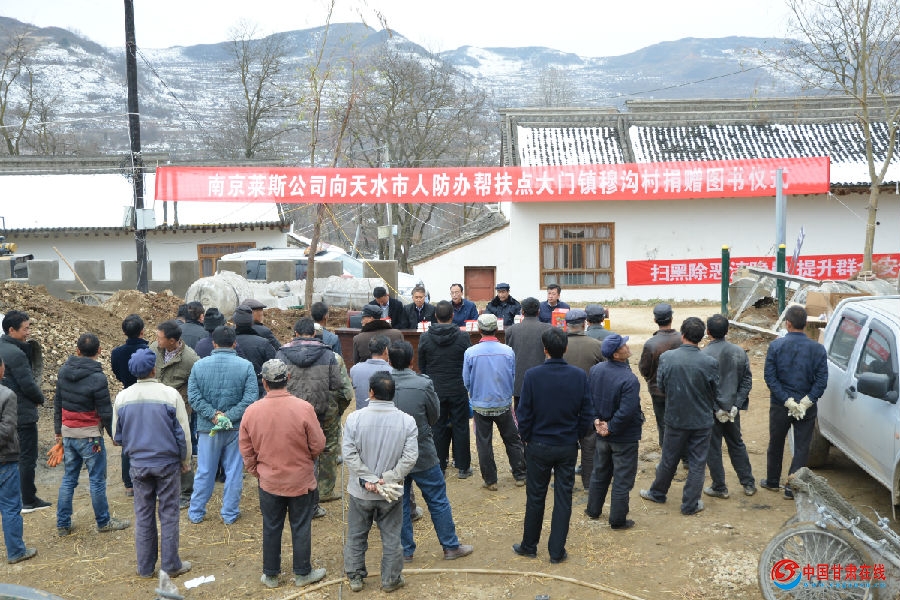 11月23日上午10时30分许,南京莱斯公司向天水市人防办帮扶点秦州区大门镇穆沟村捐赠图书仪式在在建的穆沟村文化广场举行。参加仪式的有南京莱斯公司信息技术股份有限公司人防系统事业部党支部副书记徐文军、区域经理陈孝秋,天水市人防办党组成员、副主任蔡向增,大门镇负责人,穆沟村两委班子及村民代表等。