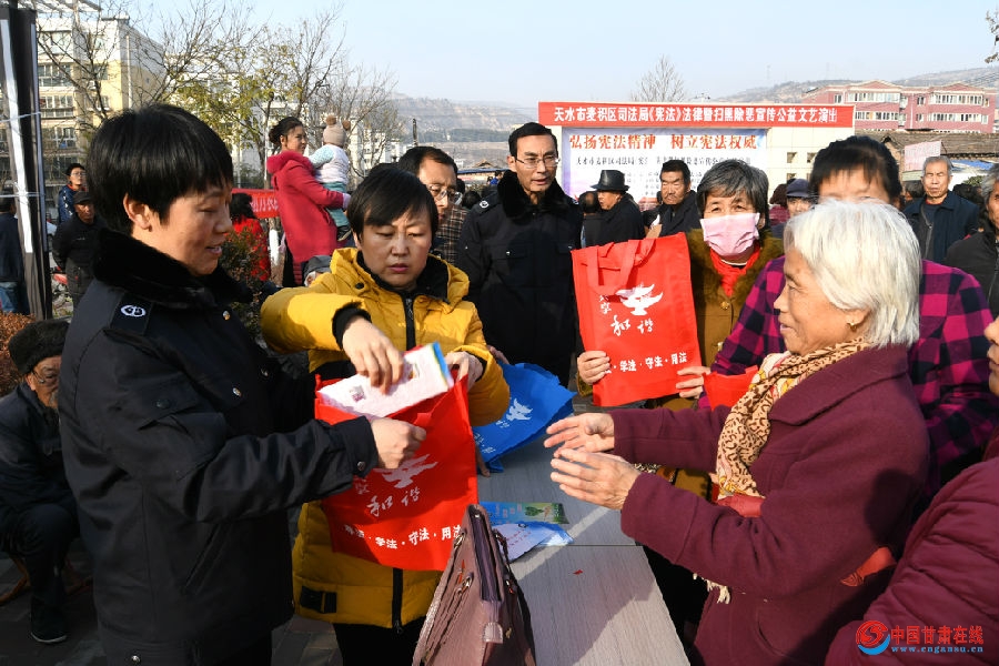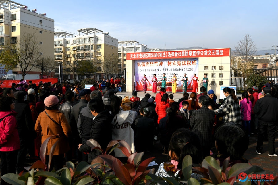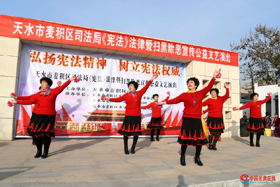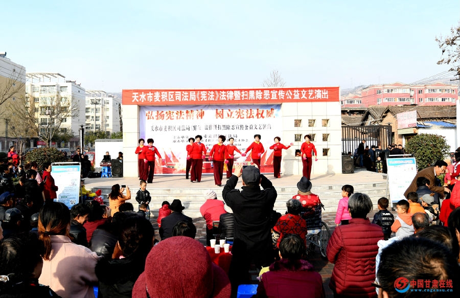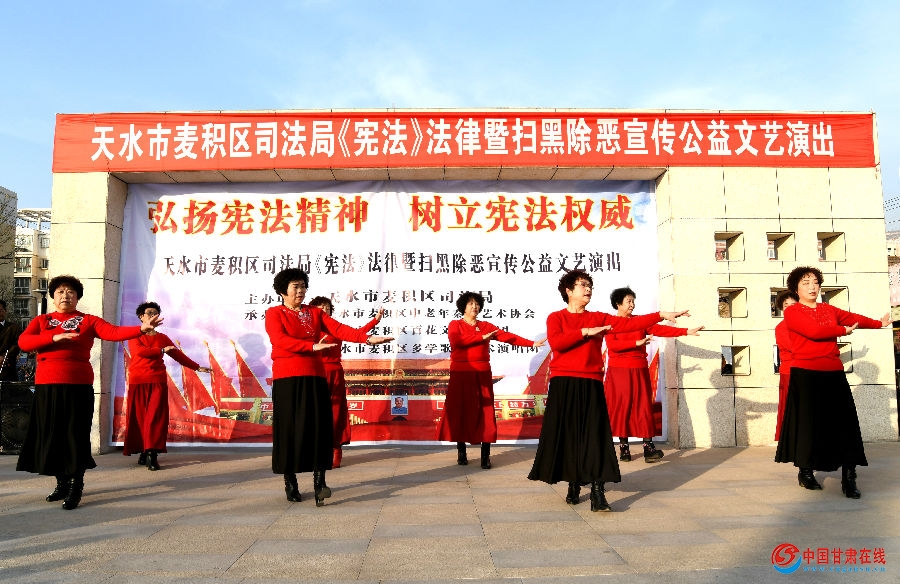 此次活动由麦积区司法局主办,麦积区中老年秦腔协会、区百花文艺演出团、区多学歌舞艺术演唱团承办,通过歌舞、秦腔、快板、眉户、葫芦丝等多种艺术表演形式,大力普及宪法知识,进行法治宣传,传播法治正能量。区司法局工作人员还通过发放资料、现场咨询,提升了群众的法治获得感,为建设幸福麦积营造良好的法治环境。(特约记者 窦耀辉)