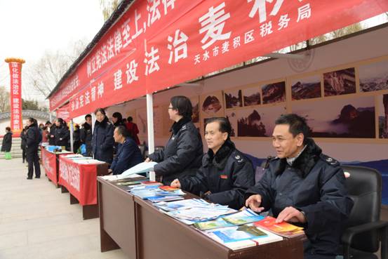 今年12月4日是第五个“国家宪法日”。也将迎来第一个“宪法宣传周”。为深入贯彻落实习近平总书记全面依法治国新理念新思想新战略,深入贯彻落实中央关于深入学习宣传和贯彻实施宪法的部署,天水市税务局与秦州区税务局组织30余名干部职工冒着严寒在天水市秦州区龙城广场扎实开展宪法宣传活动。活动期间,共散发各类宣传材料1300余份,接待群众咨询263余人(次)。市局党委委员、副局长高海平与前来咨询税收问题的群众面对面交流、一对一解答,并验证纳税人有关缴税的疑问;市人大副主任王小琴及市区两级司法部门领导前来慰问了秦州区税务局宣传工作人员,对宣传的内容和有关情况进行了现场指导并给予了充分肯定。