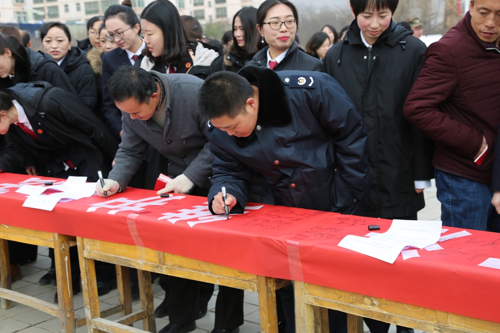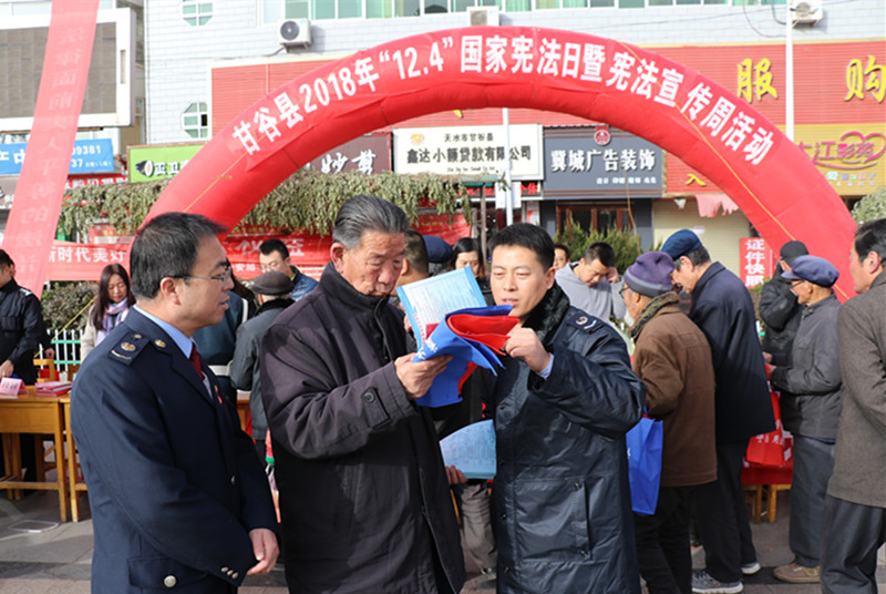 甘谷县税务局围绕“尊崇宪法、学习宪法、遵守宪法、维护宪法、运用宪法”主题,精心策划,创新形式,丰富载体,拓宽法制宣传渠道,开展丰富多彩的法制宣传活动,营造良好舆论氛围,着力增强纳税人获得感,凝聚社会共识。一是统一组织,凝聚合力。二是全员考试,增强意识。三是强化宣传,营造氛围。四是创新形式,丰富载体。组织全体干部职工集中学习《208宪法修订内容解读》,举行宪法宣誓仪式,以实际行动践行不忘初心,牢记使命,促进干部职工尊崇宪法、忠于宪法、遵守宪法、维护宪法。县局领导带队,积极开展“大走访、大调研”活动,深入民营企业,问需问计问策,送法上门,取得了良好社会宣传成效。